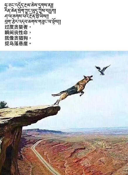 过度贪婪者,瞬间丧性命,就像贪猎狗,捉鸟落悬崖。